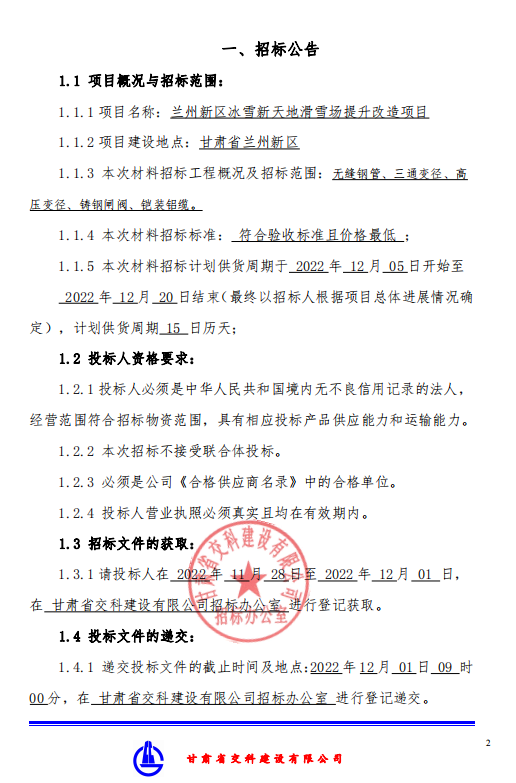 蘭州新區(qū)冰雪新天地滑雪場提升改造項(xiàng)目-材料采購-招標(biāo)公告