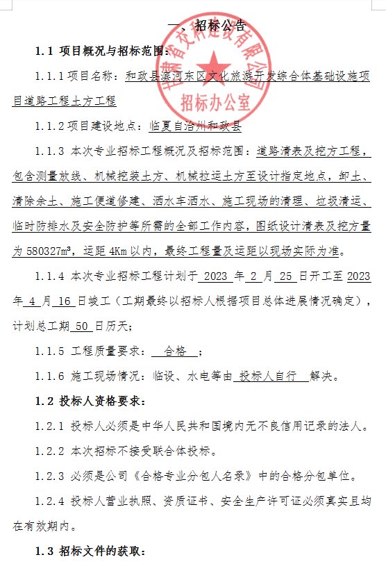和政縣濱河?xùn)|區(qū)文化旅游開發(fā)綜合體基礎(chǔ)設(shè)施項(xiàng)目道路工程土方工程招標(biāo)