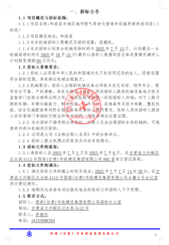 和政縣東城區(qū)城市燃?xì)獾壤匣艿篮驮O(shè)施更新改造項(xiàng)目(三標(biāo)段)--機(jī)械租賃-招標(biāo)公告